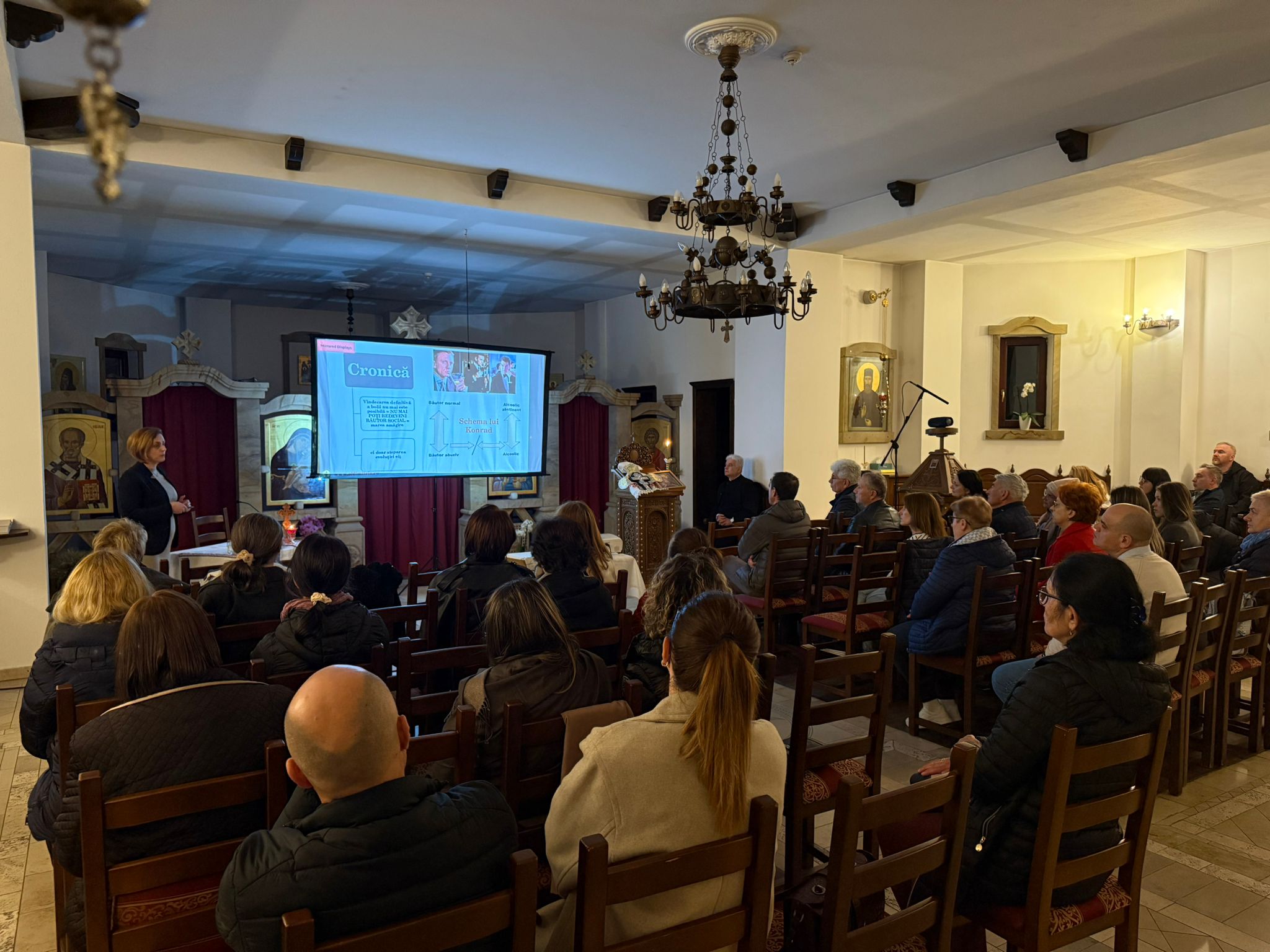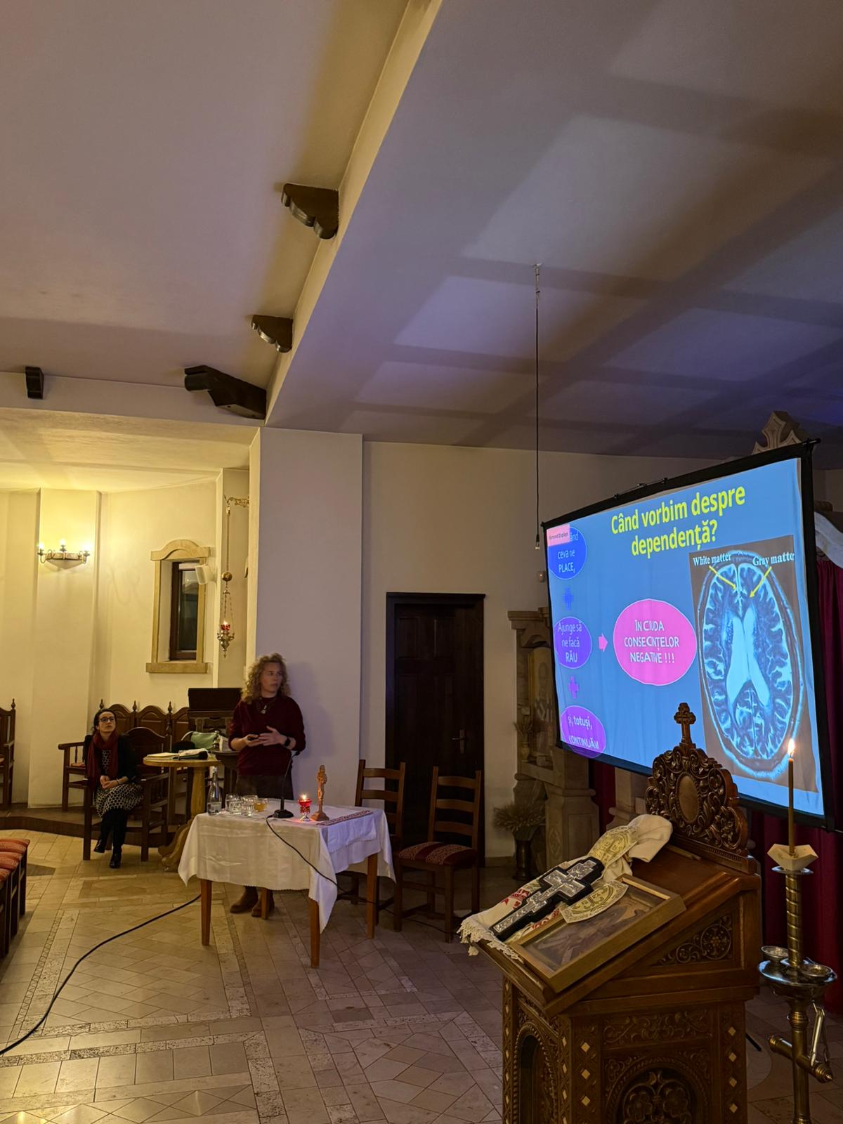 Deși numărul participanților nu a fost foarte mare, 𝐞𝐯𝐞𝐧𝐢𝐦𝐞𝐧𝐭𝐮𝐥 𝐬-𝐚 𝐝𝐨𝐯𝐞𝐝𝐢𝐭 𝐚 𝐟𝐢 𝐨 𝐫𝐞𝐮𝐬̗𝐢𝐭𝐚̆, 𝐝𝐚𝐭𝐨𝐫𝐢𝐭𝐚̆ 𝐩𝐫𝐨𝐟𝐞𝐬𝐢𝐨𝐧𝐚𝐥𝐢𝐬𝐦𝐮𝐥𝐮𝐢 𝐬̗𝐢 𝐝𝐞𝐬𝐜𝐡𝐢𝐝𝐞𝐫𝐢𝐢 𝐢𝐧𝐯𝐢𝐭𝐚𝐭𝐞𝐥𝐨𝐫 𝐧𝐨𝐚𝐬𝐭𝐫𝐞: 𝐂𝐥𝐚𝐮𝐝𝐢𝐚 𝐕𝐚𝐫𝐠𝐚, consilier în adicții, formator și asistent social, coordonator al Programului „Sfântul Dimitrie” (Asociația Filantropică Medical Creștină „Christiana”) și președinte al Asociației ARCADE, 𝐬̗𝐢 𝐍𝐢𝐜𝐨𝐥𝐞𝐭𝐚 𝐀𝐦𝐚𝐫𝐢𝐞𝐢, consilier în adicții și coordonator clinic în cadrul aceluiași program.