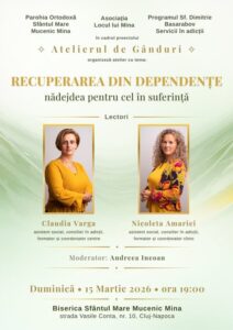 𝐈̂𝐧𝐭𝐚̂𝐥𝐧𝐢𝐫𝐞𝐚 „𝐑𝐄𝐂𝐔𝐏𝐄𝐑𝐀𝐑𝐄𝐀 𝐃𝐈𝐍 𝐃𝐄𝐏𝐄𝐍𝐃𝐄𝐍𝐓̗𝐄 – 𝐧𝐚̆𝐝𝐞𝐣𝐝𝐞𝐚 𝐩𝐞𝐧𝐭𝐫𝐮 𝐜𝐞𝐥 𝐢̂𝐧 𝐬𝐮𝐟𝐞𝐫𝐢𝐧𝐭̗𝐚̆”, desfășurată duminică, 15 martie 2026, la Biserica „Sfântul Mare Mucenic Mina” din Cluj-Napoca, în cadrul proiectului „Atelierul de gânduri”, 𝐚 𝐟𝐨𝐬𝐭 𝐨 𝐬𝐞𝐚𝐫𝐚̆ 𝐝𝐞 𝐝𝐢𝐚𝐥𝐨𝐠 𝐚𝐮𝐭𝐞𝐧𝐭𝐢𝐜, 𝐫𝐞𝐟𝐥𝐞𝐜𝐭̗𝐢𝐞 𝐬̗𝐢 𝐬𝐩𝐞𝐫𝐚𝐧𝐭̗𝐚̆.